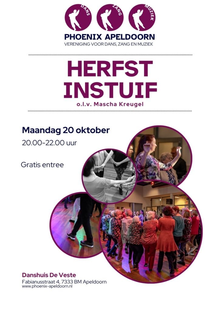 Terwijl alle bladeren rustig uit de bomen dwarrelen en de regen met een onregelmatige 9/8e maatsoort tegen het raam klettert kunnen wij lekker dansen tijdens de herfstinstuif bij Phoenix!
